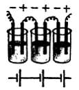 Н. — Я предполагаю, что полюс обозначает здесь каждый из выводов элемента. Очень возможно, что при таком последовательном включении напряжения складываются. Я догадываюсь, что таким образом создают батареи, используемые для питания радиоприемников.