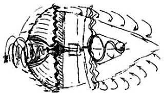 Виктор Шаубергер смог достигнуть такого движения в своей машине. Он использовал вращение вокруг своей оси овального {яйцевидной формы, не эллиптического) поперечного сечения трубки с извилистыми вырезами в виде зубцов на продольной оси. Эту форму он описал в приложении к патентам (см. рис. 18), только часть их была принята. Ускорение закручивания зависит от четырех факторов:
