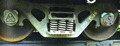 Пружинные рессоры железнодорожного вагона.