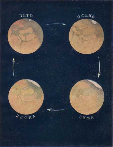 Самым замечательным является то, что окраска морей Марса периодически изменяется в зависимости от времен года на этой планете.
