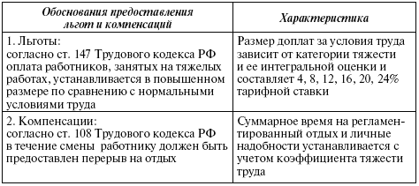 Работающие в неблагоприятных условиях труда должны иметь различного рода льготы и компенсации, согласно трудовому кодексу РФ (табл. 7.3).