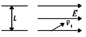 2. Электрон влетает в область электрического поля напряженностью Е = 106 В/м со скоростью V1 = 103 м/с, направленной под углом ? = 30° к вектору Е?. Найти изменение импульса частицы за время движения в поле, если размер области поля L = 2 см.