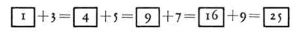 И вот между этими числами-формами было установлено существование неожиданных и чудесных отношений. Например, последовательности "квадратичных чисел" образовывались путем простого прибавления последовательных нечетных чисел: