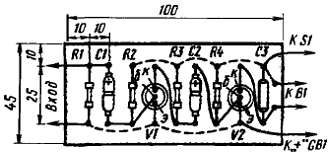 Рис 176. Монтажная плата двухкаскадного усилителя 3Ч