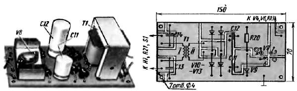 Рис. 189. Внешний вид и плата блока питания усилителя