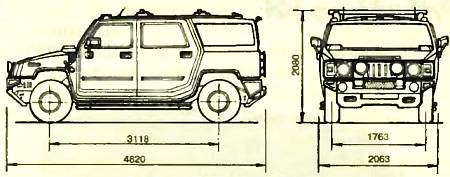 Рыночный вариант Hummer отличался от своего военного брата только тем, что в его комплектацию не входило боевое вооружение. Вторая версия автомобиля — Hummer Н2 — стала удобнее для водителей, но столь же проходимой. Автомобиль может взобраться на гору с наклоном 60 % и проехать по 40 %-му откосу.