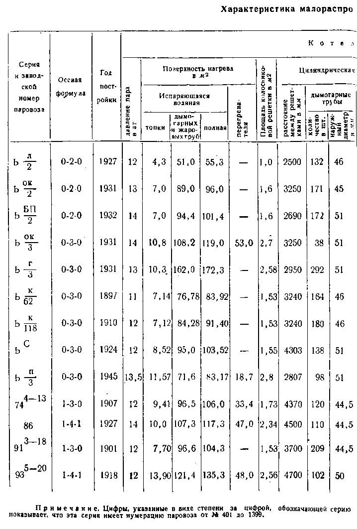 Однако цифровая система не дает исчерпывающих характеристик паровоза. Поэтому были введены серии паровозов, обозначаемые одной или двумя заглавными буквами русского алфавита. Выбор букв обычно связывался с историей паровоза, с наименованием завода или фамилией конструктора, его проектировавшего, с дорогой, заказчиком и т. д. Так, например, серия О означает грузовой паровоз, который в дореволюционной России был принят в качество основного типа; серия Щ — грузовой паровоз, построенный по проекту проф. Щукина. Танк-паровозы получили две серии: Ь — для пассажирских паровозов и Ь — для грузовых. В .некоторых случаях танк-паровозам присваивают порядковый номер проекта, например, 62, 118, 137, 143, 154, 155, 234 и т. д., или порядковый номер и букву П (промышленный), например, 4П, 5П, 9П. Узкоколейным паровозам каждой серии приписываются порядковый номер проекта 60, 63, 65, 86, 157, 159 или заглавные буквы, принятые в зависимости от наименования завода, назначения паровоза и т. д.