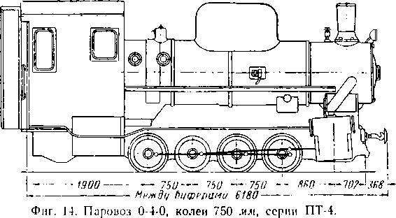 устраненные в паровозах последующей постройки. Этим паровозам присвоена серия ПТ-4 (фиг. 14), что означает П — промышленный, Т — транспортный, 4 — нагрузка на ось в тоннах.