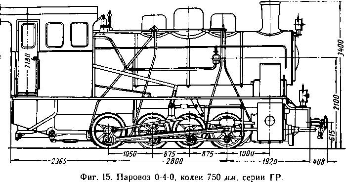 Паровоз 0-4-0 серии ГР (фиг. 15), с нагрузкой на ось