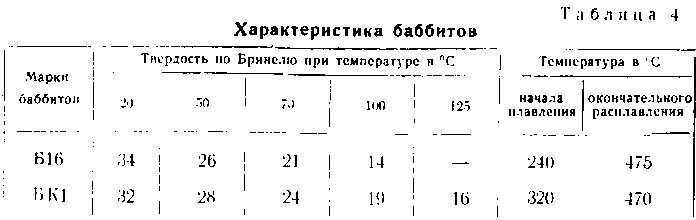 начинает плавиться. В табл. 4 приводится характеристика свинцовистого (Б 16) и кальциевого (БК) баббитов.