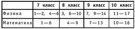 (таблица заполняется методистом ФЗФТШ)