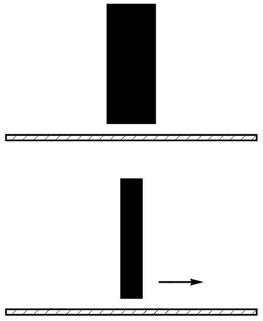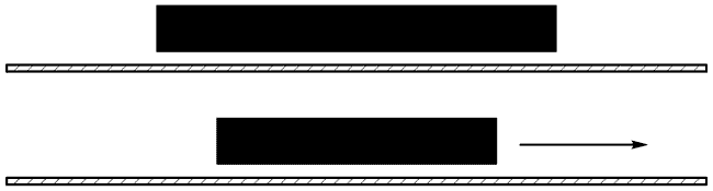 Н. Неверно. В самом деле, из преобразований Лоренца следует, что движущийся стержень сокращается в направлении движения, и сокращение тем больше, чем больше скорость. Чем быстрее движется стержень, тем короче он оказывается. Но такое сокращение происходит только в направлении движения. На рисунке 57 вы видите стержень, который сокращается до половины своей первоначальной длины, когда он движется со скоростью, приближающейся к 0,9 скорости света. Однако в направлении, перпендикулярном к движению, сокращения нет, что я и постарался проиллюстрировать на рисунке 58.