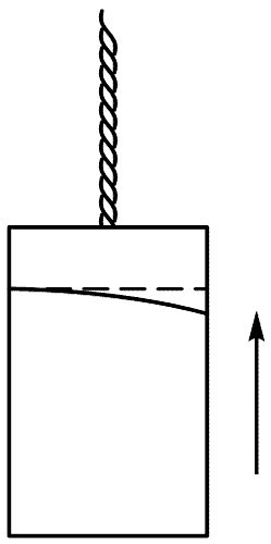 Возьмем несколько иной идеализированный эксперимент. Пусть имеется инерциальная система координат, в которой справедлив закон инерции. Мы уже описывали то, что происходит в лифте, покоящемся в такой инерциальной системе. Но теперь мы изменим картину. Кто-то извне привязал к лифту канат и тянет его с постоянной силой в направлении, указанном на рисунке 64.
