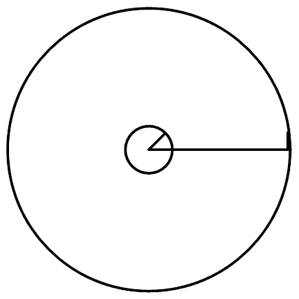 Представим себе большой диск с двумя концентрическими окружностями, нарисованными на нем; одна из этих окружностей мала, другая очень велика (рис. 66).