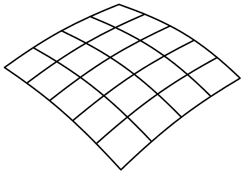 Расстояние между улицами, а также между проспектами всюду одно и то же. Поскольку это так, то и кварталы совершенно одинаковы по величине. Таким путем я могу легко характеризовать положение любого квартала. Но это построение было бы невозможно без евклидовой геометрии. Таким образом, например, мы не можем покрыть всю нашу Землю одним большим идеальным американским городом. Один взгляд на глобус убедит вас в этом. Но мы не могли бы покрыть и ваш диск такой «американской городской конструкцией». Вы утверждаете, что ваши стержни деформированы гравитационным полем. Тот факт, что вы не могли подтвердить теорему Евклида о равенстве отношений радиусов и окружностей, ясно показывает, что если вы продолжите такое строительство улиц и проспектов достаточно далеко, то рано или поздно, вы придете к трудностям и найдете, что оно невозможно на вашем диске. Ваша геометрия на вращающемся диске подобна геометрии на кривой поверхности, где, конечно, указанное построение улиц и проспектов на достаточно большой части поверхности невозможно. Для того чтобы пример был более физическим, возьмем пластинку, неравномерно нагретую, с различной температурой в разных частях поверхности. Можете ли вы с помощью тонких железных прутов, длина которых увеличивается от нагревания, выполнить «параллельно-перпендикулярное» построение, нарисованное мною ниже? Конечно, нет! Ваше «поле тяготения» разыгрывает над вашими стержнями ту же шутку, что и изменение температуры над тонкими железными прутами.