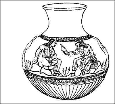 Изображения на скифском сосуде. Старый скиф вручает юноше лук. (IV в. до н. э.)