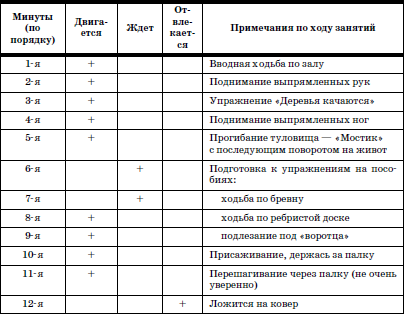 Хронометраж поведения ребенка старше года на занятиях гимнастикой