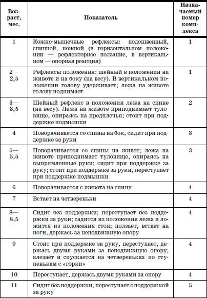 Данные показатели развития движений могут быть основанием для назначения физиологического комплекса. При их отсутствии прежде всего необходимо обратиться к специалисту (невропатологу, ортопеду, врачу ЛФК).