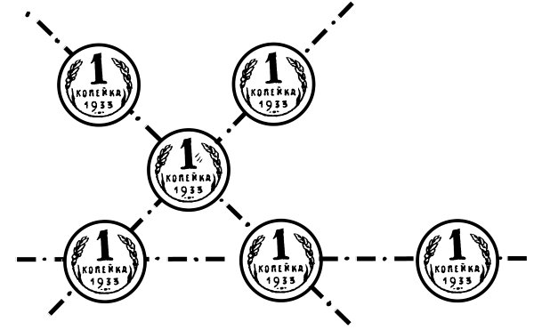 Вы думаете, это невозможно? Не хватает еще трех монет? А вот поглядите, они расположены на рисунке.