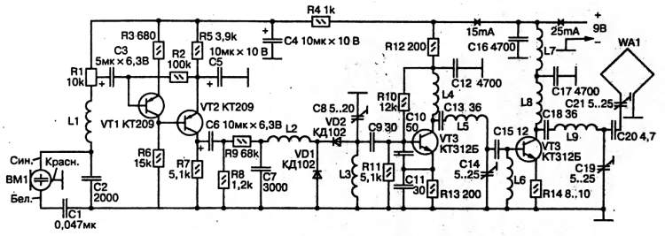Рис. 17. Принципиальная схема радиомикрофона с рамочной антенной