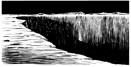 Рис. 54. Конец конуса лунной тени скользит по земной поверхности; в покрытых им местах наблюдается солнечное затмение