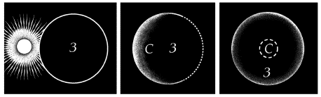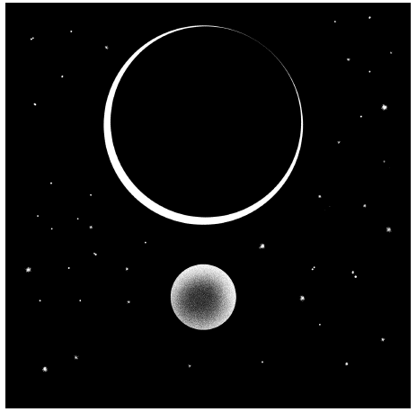 Рис. 55. Вмоментполногосолнечногозатмения вокруг черного диска Луны вспыхивает «солнечная корона»