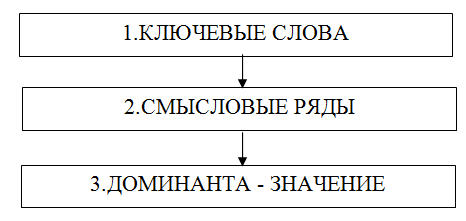 Таким образом, при чтении любого текста сознание соединяет ключевые слова в лаконичные, свернутые выражения смысловых рядов, несущие основной замысел автора. Текст как бы мгновенно сжимается, мысленно конспектируется. В нем остаются только зерна мысли, «золотое ядро» на уровне непрерывных цепочек пар слов.