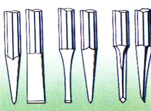 Фигурные стамески нужны, когда необходимо прорезать треугольные канавки или получить углубление с точными параметрами.