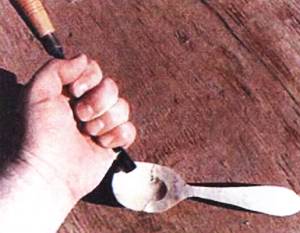Работают стамеской, используя лишь нажим руки, в направлении от себя, аккуратно и осторожно. Иначе порез остро заточенным инструментом может быть очень глубок. Лишь иногда при работе с твердыми породами дерева мастер легонько постукивает по рукоятке ладонью или специальной обрезиненной колотушкой.