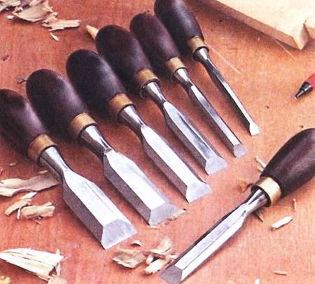 Профессиональные мастера особо ценят отечественные стамески, по своим свойствам не уступающие дорогим немецким и швейцарским. Выбирая стамеску, спросите, как она изготовлена. Различают кованые (с толстыми гранями), вырубные (с тонкими) и штампованные (с параллельными широкими сторонами).