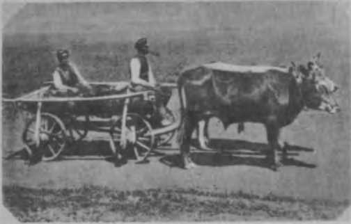 Переходових форм од саней до колесного ходу, таких, як, наприклад, ще трапляються в кантоні Vaud в Швейцарії і в яких передню частину становлять сані з короткими полозами, а під задньою вже е пара колес,— на Україні тепер нема»;, навіть у гірських місцевостях, так само як уже немає, за винятком дитячих забавок, і первісних колес з суцільного дерева або з кількох шматків, що творять міцне суцільне коло. Такі колеса трапляються і тепер на Кавказі. Найпростіший, але тепер вже дуже мало поширений на Україні прилад для їзди — це візочок на двох колесах, так звана біда, чи бідка Дуже сумнівно, однак, щоб біда була як небудь споріднена з одноколкою князівського періоду та тими чисто східніми половецькими возами, іцо їх знаходимо намальованими на мініятюрах Кенігсбергського списку з ночатків XVI ст.; найпевніше можна гадати, що біда західнього походження, А найзвнчайніший на Україні прилад для їзди — це віз, що переховав і досі свою старовинну назву, під якою він Існував і за князівської доби. Він буває кінський або воловий. Ріжниця між цими двома формами полягає в тому, що на Лівобережжі до кінського воза приставляють голоблі, а до волового дишель чи вію; а щодо Правобережжя, де голобель майже не вживають, то там вія відріжняється од дишла тільки тим, що вона на задньому кінці роздвоюється, наче вила, і кожна розвилка обхоплює відповідну вісь так само, як і головка голоблі, тимчасом як дишель рівний та вставляють його проміж спицями, закріплюючи його там залізними обручками. Крім того, кінський віз буває трохи менший та легший за воловий.