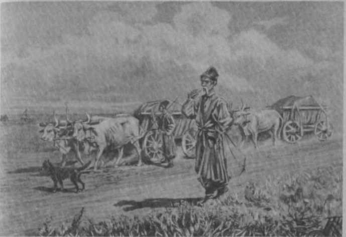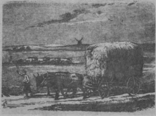 в Таврії та в Бессарабії вози далеко більші та переходять у німецький фургон, гарбу та сділіжан», досягають иноді дуже великих розмірів та пристосовані головним чином, щоб перевозити великі кількості сіна чи соломи. На Правобережжі хури чи фурманки звичайно бувають довші та глибші за полтавські вози, а на Волині, особливо на півночі, де дороги чи, краще сказати, просіки в лісі дуже неширокі, вози досить довгі та незвичайно вузькі, так що иноді в них двоє поруч поміститись не можуть і мусять сідати, як гуси, один за одним; крім того, тут до воза завше вкладають плетену з лози ко-шовку, відкриту спереду та зі спинкою ззаду. Нарешті, цілком окремий тип воза становить мама, цебто чумацький віз. Він одзначаеться, або, ліпше сказати, відзначався великими розмірами, міцністю та вагою, дуже вибагли пою орнаментацією та дуже старанно обробленою своєю верхньою частиною, що її викладали дубом; крім того, він завше мав шкуратяний дах та важницю для підважування, то містилася збоку на особливих сучках передньої та задньої люиінї.
