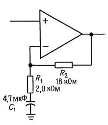 Например, в неинвертирующем усилителе можно было цепь обратной связи заземлить через конденсатор (для того чтобы сделать коэффициент усиления по постоянному току равным единице, рис. 4.7), но просто подключить его последовательно между инвертирующим и неинвертирующим входами не могли.