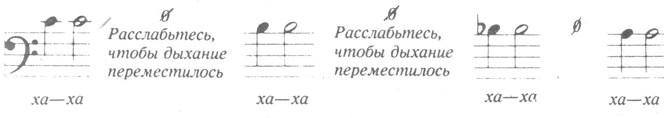 Чередуйте "ха— ха" и "ффф", чтобы понять, насколько близко друг к другу находятся Ваши ощущения от дыхания, как такового, и дыхания, к которому прибавляется звук.