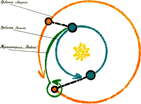 После старта с Земли космические путешественники через 200 суток должны достигнуть окрестностей Марса. Первый маневр — выход на промежуточную орбиту искусственного спутника планеты. Затем — еще три раза переход с одной орбиты на другую, постепенно приближающих космический аппарат к Фобосу. Наконец, обращаясь на такой же круговой орбите, как и Фобос, станция получит возможность приблизиться к загадочному объекту почти вплотную.