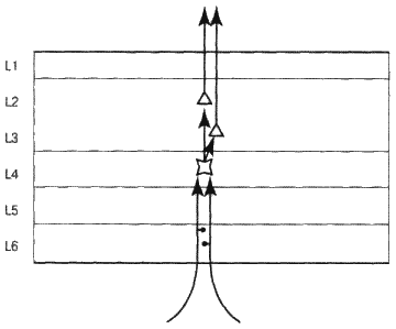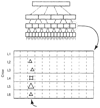 Рис. 6.6. Слои и колонки в зоне коры головного мозга