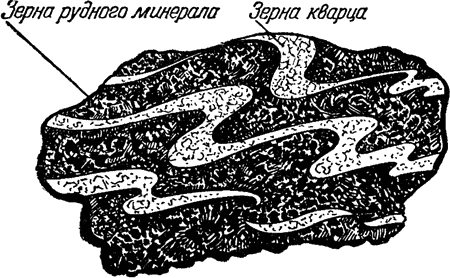 Рис. 12. Кусок горной породы (железистый кварцит) из окрестностей г. Старого Оскола с мелкими складками, дающими пример ярко выраженных пластических нарушений.