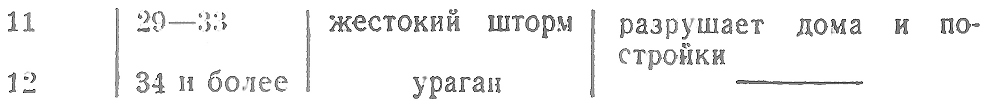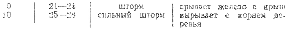 Описании действия урагана в таблице Бофорта нет. Вместо них прочеркнута черта. Но черта эта красноречивее слов.