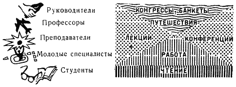 Работник тоже принял этот принцип к сведению. Он стремится попасть в квадрат повыше и покрупнее, даже если для этого необходимо поработать локтями. Маленькие Схемы организации вывешиваются во всех подразделениях института.