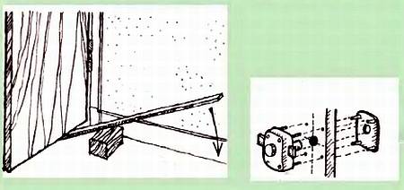 На рисунках показано, как поставить под дверь клин, использовать рычаг для ее подъема, а также куда помещать шайбы в дверных петлях.