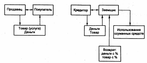 Во-вторых, движение денег носит не только мимолетный, но и односторонний характер: деньги уходят от покупателя к продавцу. При движении кредита передаваемая ссуженная стоимость вначале идет от кредитора к заемщику, а затем - от заемщика к кредитору.