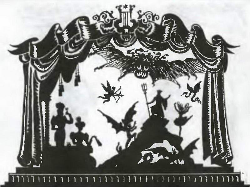 1948 год. Пик борьбы с «космополитизмом» и «низкопоклонством перед Западом». Идет дикая компания, в процессе которой каждый старается опередить другого в обвинениях в «космополитизме» и «низкопоклонстве». Кажется, именно тогда появилось блатняжное выражение: «Кто опоздал, тот не успел», то есть сел обвиненный сам. И туг же милая французская игрушка — театр теней, изящных силуэтов.