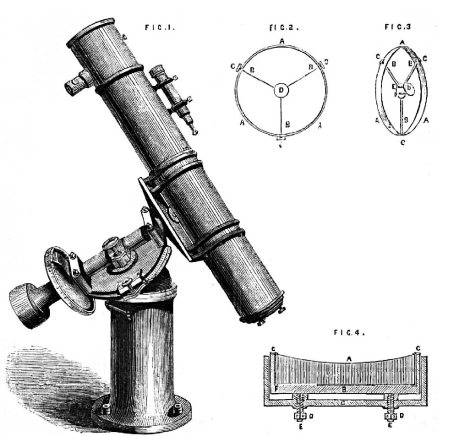 Рис. 3.14. Рефлектор с зеркалом диаметром 6,5 дюймов, изготовленный Дж. Браунингом в 1866 г. Иллюстрация: English Mechanic and Mirror of Science от 25 мая 1866 г.