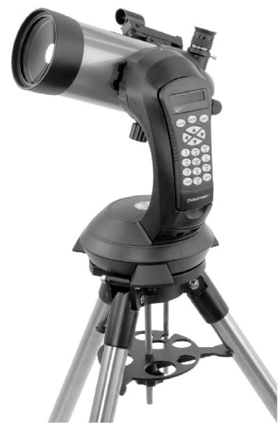 Рис. 3.23. Телескоп системы Максутова-Кассегрена диаметром 102 мм на складном штативе с полувилочной монтировкой и автоматическим наведением. Мечта начинающего любителя астрономии! Телескоп снабжен искателем и окулярной призмой, позволяющей наблюдать в удобном положении. Максимальное штатное увеличение 240х. Прекрасно подходит для наблюдения Луны и планет. Изготовитель – фирма «Celestron»; цена – около 600 долларов.