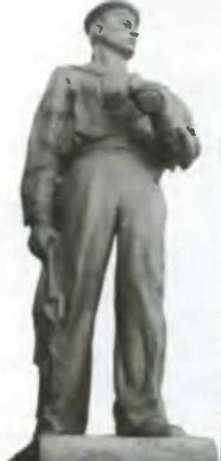 По сути дела, в советских военных памятниках существовало всего два типа солдата: стоящий в траурной позе, с оружием, знаменем или венком или же героически умирающий — падающий, иногда с гранатой в руке. При ближайшем рассмотрении можно выделить еще один тип, не относящийся прямо ни к первому, ни ко второму: это солдат, который словно вмурован в камень или стену, который только частично виден зрителю (остальные, воображаемые части тела находятся внутри камня или стены) и который как бы "вылезает", "выходит" из этого камня или стены, а иногда вырастает из-под земли. Эти образы подтверждаются официальными текстами. Так, в путеводителе по Мамаеву кургану написано: "В центре зала, словно из земли, вытягивается рука с факелом Вечного огня — символа жизни, который нам протянули те, кто шел на смерть и вечно спит рядом в братских могилах защитников Сталинграда".
