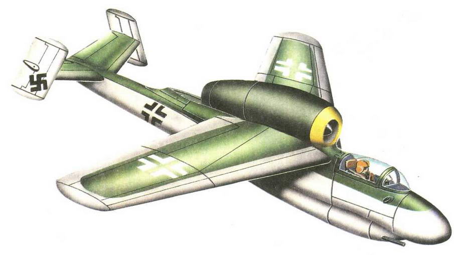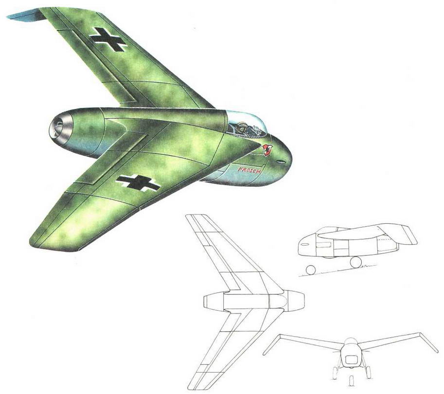 вать возможно большее количество агрегатов существующего Не 162. От «Народного истребителя» имеющийся проект внешне отличался двигателем и, прежде всего, использованием изломанного стреловидного крыла и V-образного оперения.