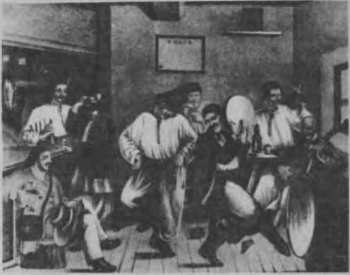 Шгани (перське іштан), гачі. спогіні, шаровари (baQu?ci&ta. ooQu?a t»a), ногавиці (?). Питання про нижню поясну чоловічу одежу, здається, найтяжче в цілій етнографії як українського, так і взагалі слав’янського костюма Назви цієї частини одягу у ріжних слав’янських народів неоднакові і навіть не завше славяиські. За найпоширенішу з-поміж цих назв, здається, треба визнати назву гачі, шо трапляється у сербів, чехів, українців І, мабуть, у поляків (gaci) та у великоросів (переховалося таке слово—гашник), а назви такі, як сподні, порти — у карпатських українців, портяниці. хоч І слав'янські, але не спеціяльні, бо стосуються або до одягу взагалі, або до його матеріялу. На території сучасної України штани, безперечно, були відомі ще за доісторичних часів, наприклад, у скнфів, не кажучи вже про азійські народи, що заселювали її пізніше. Найраніші історичні згадки за цю одежу ми знаходимо в VI столітті у Прокопія, а далі, вже ясніші, в XI столітті в київських та в чеських хроніках. Але ці згадки дають нам тільки право відкинути всякий сумнів щодо ТОГО, чи історичні часи застали вже слав ян у штанях. Чи були вони приналежністю всіх станів суспільства тих часів, ми не знаємо; але щодо віку, то нам відомо, шо не так ще давно,а коло півстоліття тому чи трохи більше хлопці літ до 15-ти, а иноді й до шлюбу, штанів не носили, а ходили в довгих полотняних сорочках, підперезані якою небудь крайкою, а то й просто мотузочком.
