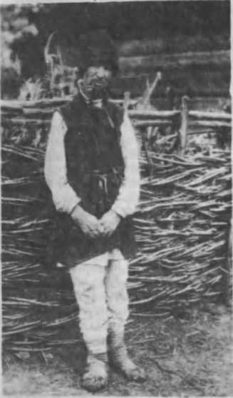 3) Головне вкриття. Крім не зовсім ясної вказівки на те, шо київські ченці X! століття плели клобуки, инших відомостей про чоловіче головне вкриття східніх слав’ян у нас цілком немає. коли не зважати на згадки про соболеві іа инші коштовні шапки у князів та дружинників. Але шо вживання футра та повсті скрізь попереджувало вживання плетеної повни, то можна припускати, що й на Україні за давніх часів маса населення носила вже шкуряні та повстьові шапки У тих місцевостях України, що особливо відзначаються переховуванням архаїчних форм, а саме на півночі та в горах, і тепер ще носять зимою смушкові шапки, а в инші частини року — повстяні магерки чи шолом ки. які вже виробляють не тільки з гювсті, але й з валяного коли не плетива, то грубої тканини. Деякі етнографічні дані, що переховались у пам'яті старих людей та в старовинних свідоцтвах, як згадувані вже рукописи Де ля Фліза. дозволяють думати, шо ці старовинні магерки та шоломки, які в ужитку й тепер як виняток серед українського населення, але панують иа Білорусі, були не так ше давно поширені й на Україні, досить далеко на південь (на Лівобережжі — на Полтавщині і, наприклад, у Сквирському повіті на Київщині — на Правобережжі) Поступова заміна їх на смушкові шапки та брилі йшла вкупі зі згаданим уже поширенням східньої одежі; при цьому цікаво ге, шо смушкові шапки на півдні часто мають такі самі назви, як І повстяні на півночі. Так, на Київщині, наприклад, як каже Б С. Познанський, Поломом звуть циліндричну смушкову шапку, а в Канівському повіті майже таку саму шапку звуть магеркою. Дуже багато труднощів дослідувачам запорожського побуту дає ріжноманітність козацьких шапок на перехованих малюнках та в описах їх. Б. С. Познанський, що мав нагоду бачити запорожський шлик у селі Покровському на Катеринославіцині — між иншим, цілком однаковий і з шликом на малюнку Голембіовського,— приходить до висновку, іцо цей шлик, або, краще сказати, верхня частина його, цебто суконний мішок, що становив дно шапки та звішувався з голови.— і був справжнім головним вкриттям у запорожців; висота самої шапки мінялась відповідно до моди. Це дуже правдоподібно і, ясна річ, не виключає існування н инших типів шапок, що їх за ріжних часів носили запорожці, як, наприклад, шапка-кабардиика тощо, не кажучи вже про боброві та з рисі або з иншого якого коштовного футра, що ними так чепурилась козацька старшина, шо за них згадують у своїх денниках Ханенко і Маркович.