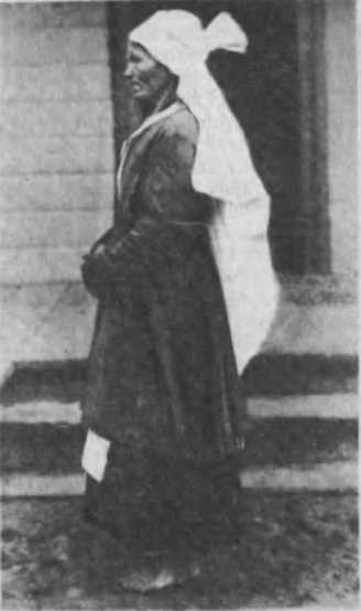 2) Нижня поясна о д е ж а (білизна). Штани. Жіноча білизна для нижньої частини тіла коли й існує на Україні, то в найпримітивніше-руди-меитариому вигляді. Подекуди, як, наприклад, в Ковельському повіті на Волині та в деяких місцевостях Галичини тощо, вживають так звані оав'яз-ки» або пової та заео? Це — прямокутний шматок полотна; ним обмотують ногу від нижньої частини стегна (трохи вище за коліно) аж до щиколотки та прикріплюють його якимсь шнурочком чи крайкою вгорі і внизу. Селянки кажуть, що вони це роблять проти шкідливого впливу роси на шкуру під час ранніх холодів. А зимою за великих морозів, виходячи з дому надовго, українські жінки просто вдягають чоловічі штани, а особливих штанів для себе не шиють. Виняток становить Галичина, особливо її гірські частини: Гуцул ь-щнна та почасти БоАківщина. Там носять спеціально жіночі штани — лсжо-лінниці чи доколінниці (доколеице у чорногорців), також найрудиментарні* шої форми. Це — просто дві окремі штанини, що являють собою два довгих наскрізних мішки з білого сукна, нічим один з одним не зв'язані; вдягають їх кожну штанину окремо та прикріплюють зав’язками.