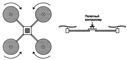 Рис. 1.1. Схема конструкции простейшего квадрокоптера